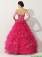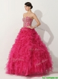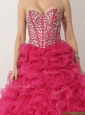 Visible Boning Hot Pink Quinceanera Gown with Beading and Ruffles