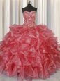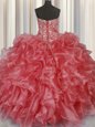 Home >  Quinceanera Dresses >  Luxurious Quinceanera Dresses > Visible Boning Sleeveless Floor Length Beading and Ruffles Lace Up Sweet 16 Dresses with Coral Red