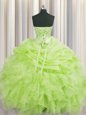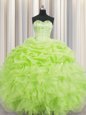 Visible Boning Yellow Green Sweetheart Lace Up Beading and Ruffles and Pick Ups Quinceanera Dresses Sleeveless