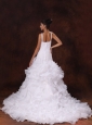 V-neck A-line Organza Chapel Train Ruffles Church Stylish Wedding Dress For Custom Made In 2013