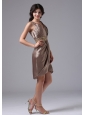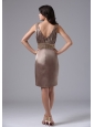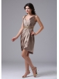 V-neck and Beaded Decorate Waist and Column For Short Prom Dress Albany California City