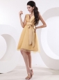 Simple but elegant! This a-line champagne dress features a v-shaped neck with the fitted waist decorated with a ruched band and bowknot. The mini length skirt is sexy to let out your sexy legs and wonderful shoes. The hidden zipper on the back allows easy off and on and secures the dress in place.