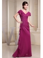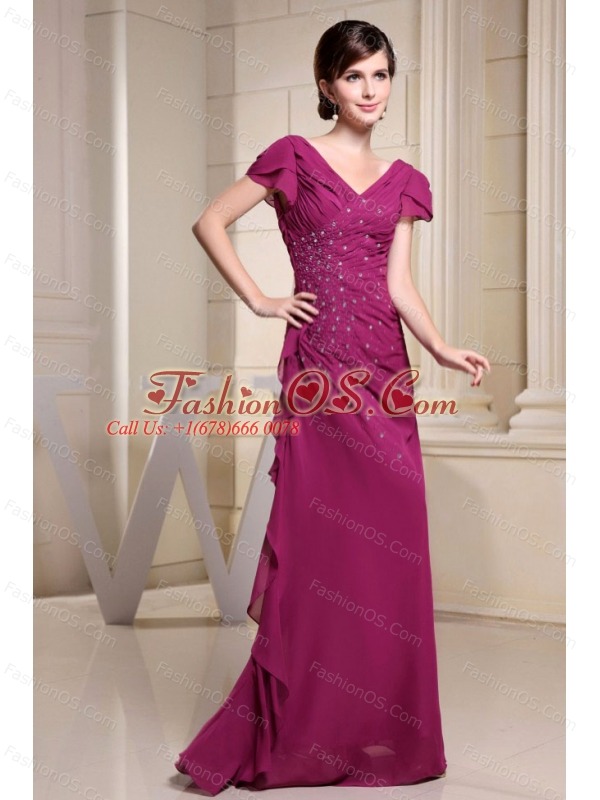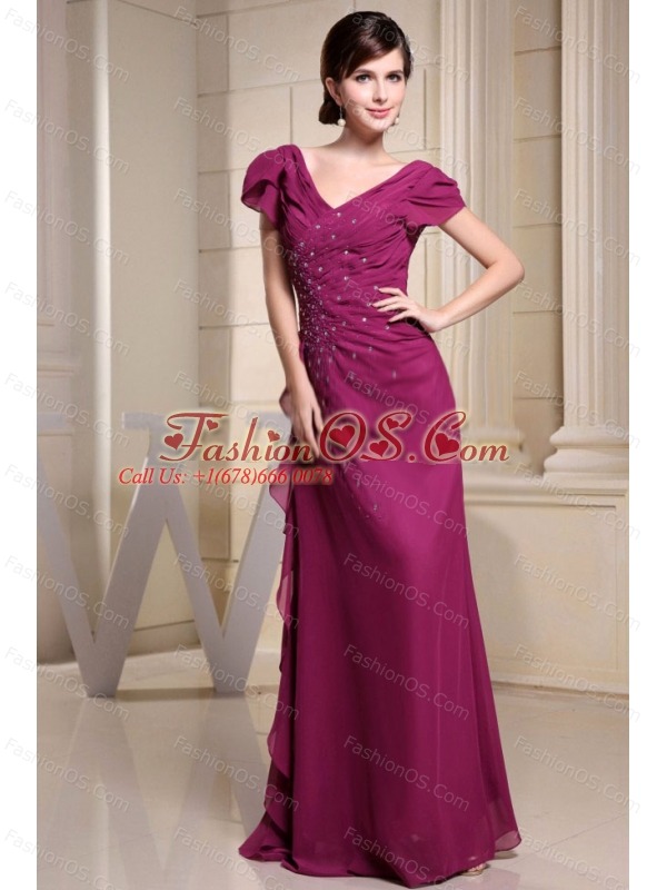 V-neck and Short Sleeves For Mother Of The Bride Dress With Beading