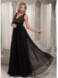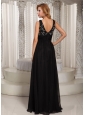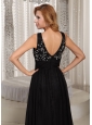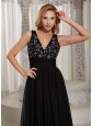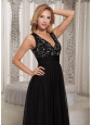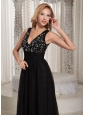 V-neck Beaded Bodice Cheap Prom Celebrity Dress Black Chiffon