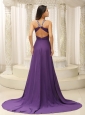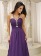 Bandage style dresses are very popular figure flattering designs. This one wraps your body in gorgeous chiffon until just past the waist. It has a tantalizing halter top that is trimmed with sparkling crystals. The A-line skirt with naturally flowing pleats sweeps the floor creating a lovely silhouette. A open back represents your feminine pretty and adds the sexy feeling. This is one of those clean and classic designs that never goes out of style.