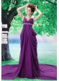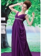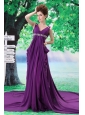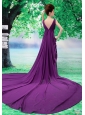 Home >  Evening Dresses > V-neck Beading Evening Dress Chiffon Purple Watteau Empire