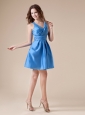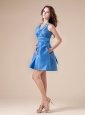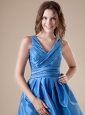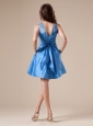 V-neck Blue Mini-length Taffeta 2013 Prom / Homecoming Dress