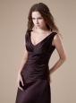 Do you wnat to be the spotlight on your son or daughter's big day? If so, this brown dress will definitely help you stand out. The skirt features a ruched bodice with deep V-neckline which can conture your perfect figure and show your sexy. And the ankle-length with gorgeous satin fabric gives a touch of romance on the dress. Zipper up back.