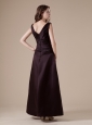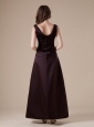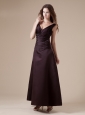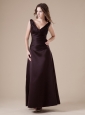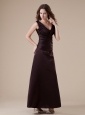 V-neck Brown Ankle-length Satin 2013 Bridesmaid Dress