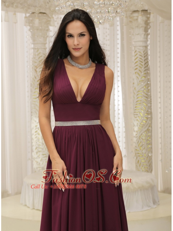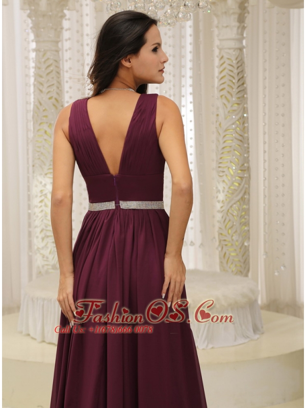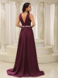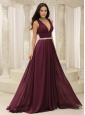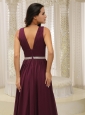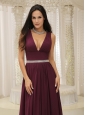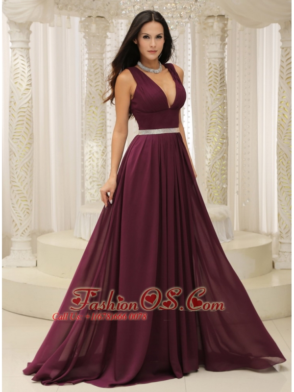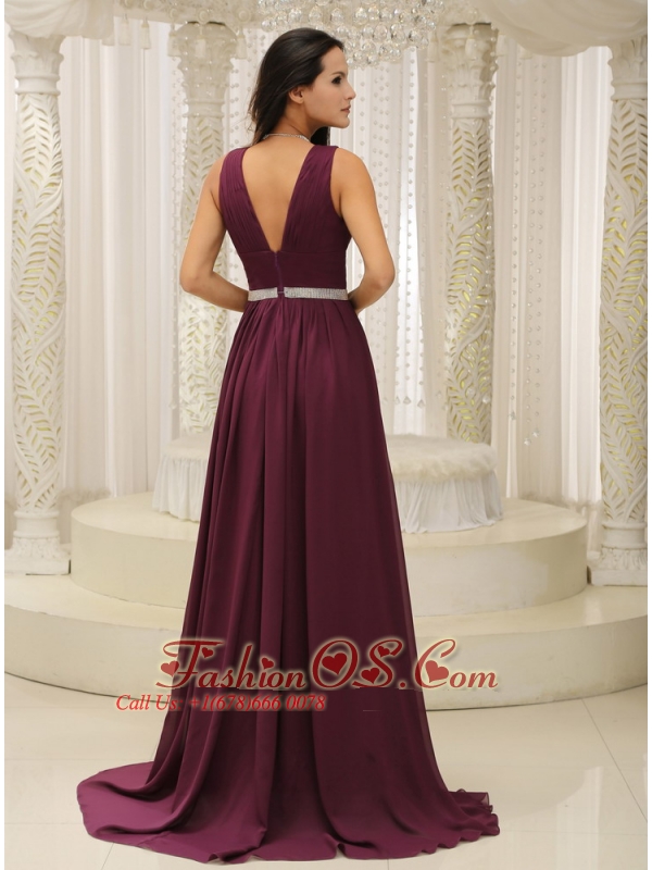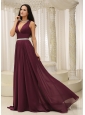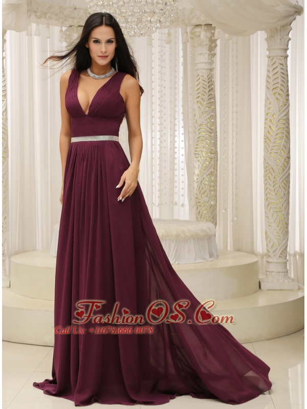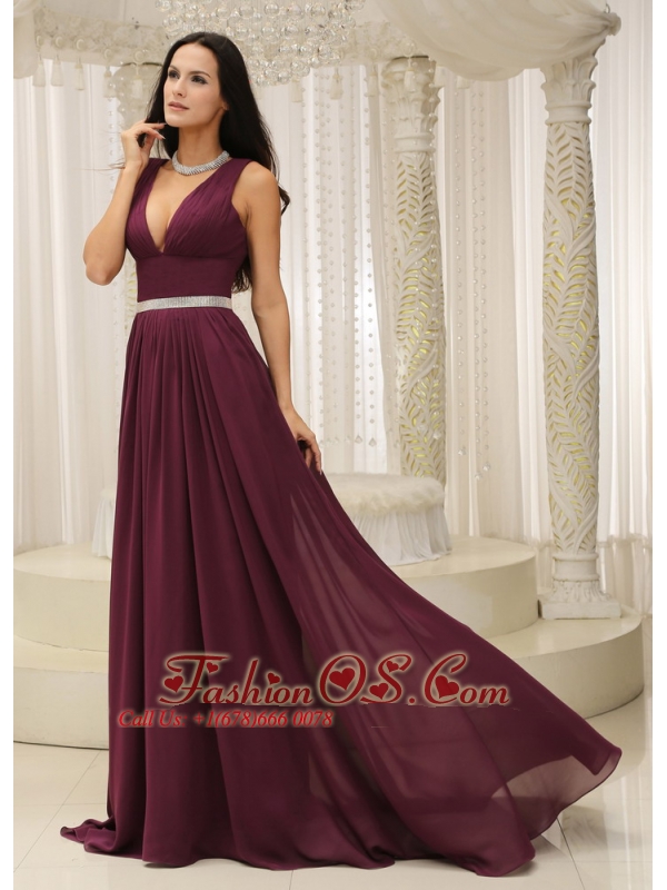 V-neck Burgundy Brush Train For Mother Of The Bride Dress Belt Customize In Montana