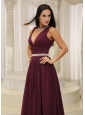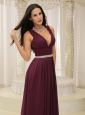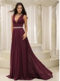 Home >  Special Occasion Dresses >  Mother of the Bride Dresses > V-neck Burgundy Brush Train For Mother Of The Bride Dress Belt Customize In Montana