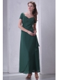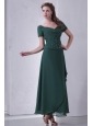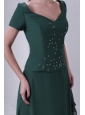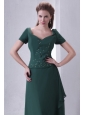V-neck Chiffon Beading Ankle-length Prom Dress with Short Sleeves