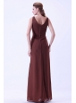 You will like this wonderful brown bridesmaid dress. It features a v neckline and ruchings decorates the bodice throughout. The asymmetrical ruchings design and chiffon flowing skirt make the dress very special. A hidden zipper makes for easy off and on and secures the dress in place. It is such a perfect dress, why not bring it to your home!