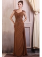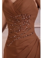 V-neck Column Chiffon Appliques with Beading Prom Dress in Brown