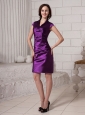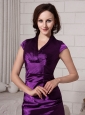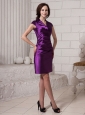 V-neck Column Mother of the Bride Dress Mini-length Taffeta Short Sleeves For 2013 Custom Made
