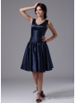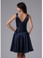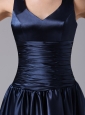 V-neck Empire and Ruch For Navy Blue Bridesmaid Dress In Bellflower California