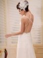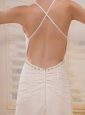 This dramatic white prom dress is sure to turn all heads! It features two spaghetti straps extending back to create a cross over open back that gives you a chance to show your smooth skin and charm. The whole skirt is accented with soft pleatings falling in clean lines to floor and the falbala train hem adds your elegance. A zipper up closure makes for easy off and on.