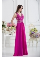 V-neck Empire Floor-length Prom Dress in Fuchsia with Appliques