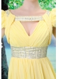 V-neck Light Yellow 2013 Prom Evening Dress With Beading and Ruch In Celebrity