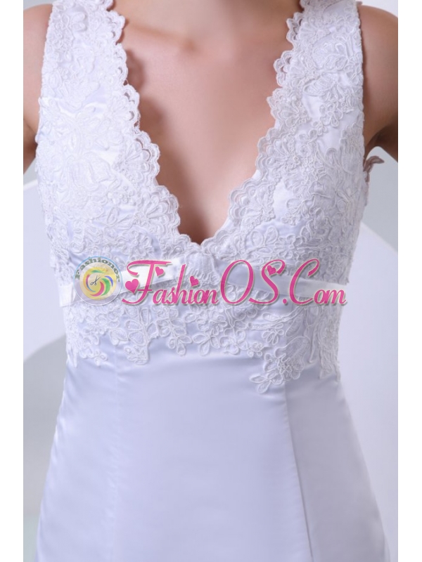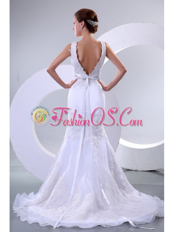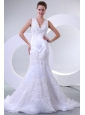 V-neck Mermaid Organza Appliques Wedding Dress for 2014 Spring