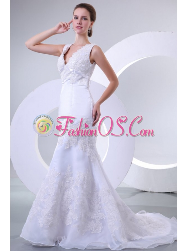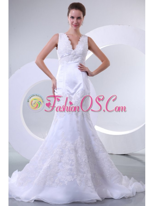 Home >  Wedding Dresses >  Perfect Wedding Dresses > V-neck Mermaid Organza Appliques Wedding Dress for 2014 Spring