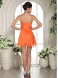 Looking for a prom dress with a chic design that will make it easy to move and dance yet still look sexy and glamorous? Well here it is! This elegant strapless dress for prom is fabulous. A orange skirt with a contrasting white V-neckline, the dress show off its unique design. Slight ruching details througthout the bodice are to create a perfect effect. A mini-length skirt drops from the under bust to the back in a nature loose. Layers of soft sheer chiffon makes the dress flowy and airly.