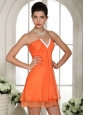 Home >  Special Occasion Dresses >  Dama Dresses for Quinceanera > V-neck Mini-length Orange Dama Dresses for Quinceanera