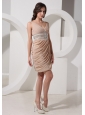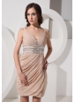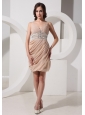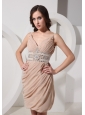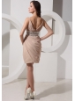 Home >  Special Occasion Dresses >  Homecoming Dresses > V-neck Neckline Mini-length Beaded and Ruch Decorate Champagne Prom Dress