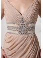 V-neck Neckline Mini-length Beaded and Ruch Decorate Champagne Prom Dress