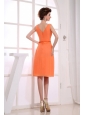V-neck Orange Knee-length Ruching Bridesmaid Dress For 2013