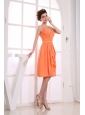 Home >  Bridesmaid Dresses >  Elegant Bridesmaid Dresses > V-neck Orange Knee-length Ruching Bridesmaid Dress For 2013
