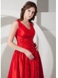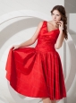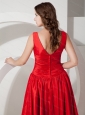 Home >  Special Occasion Dresses >  Dama Dresses for Quinceanera > V-neck Red Knee-length Taffeta Discount Dama Dress