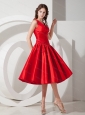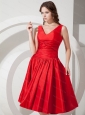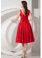 V-neck Red Knee-length Taffeta Discount Dama Dress