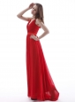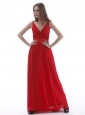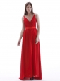 V-neck Red Prom Dress With Ruch Floor-length Chiffon