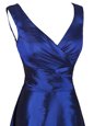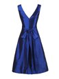 V-neck Sleeveless Evening Dress Knee Length Sashes|ribbons Navy Blue Satin