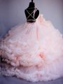 V-neck Sleeveless Little Girl Pageant Gowns Brush Train Hand Made Flower Pink Tulle