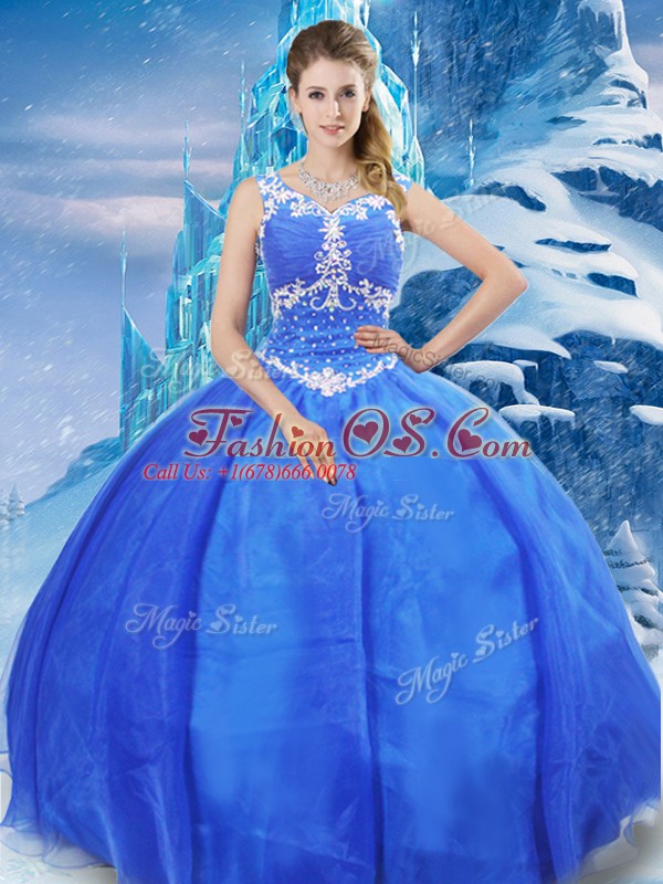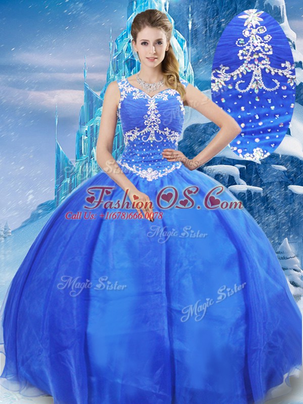 V-neck Sleeveless Organza Quince Ball Gowns Beading Zipper