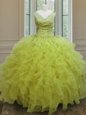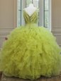 V-neck Sleeveless Organza Sweet 16 Quinceanera Dress Beading and Ruffles Zipper
