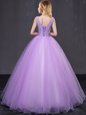 Home >  Quinceanera Dresses >  Pretty Quinceanera Dresses > V-neck Sleeveless Quince Ball Gowns Floor Length Lace and Appliques Lavender Tulle