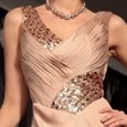 Home >  Prom Dresses >  Beautiful Prom Dresses > V-neck Sleeveless Satin Evening Dress Beading and Ruching Backless
