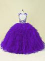 V-neck Sleeveless Sweet 16 Dresses Floor Length Beading and Ruffles Purple Tulle