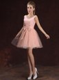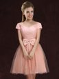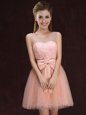 V-neck Sleeveless Tulle and Lace Quinceanera Dama Dress Lace and Bowknot Lace Up