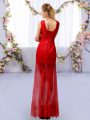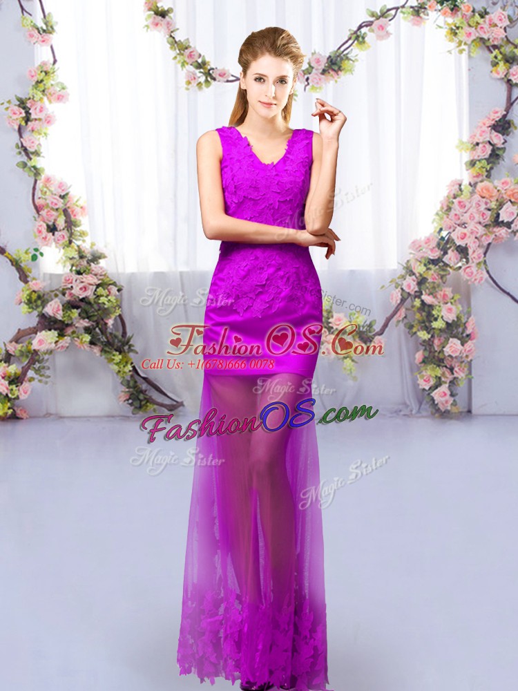 V-neck Sleeveless Tulle Bridesmaid Dresses Lace Lace Up