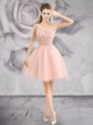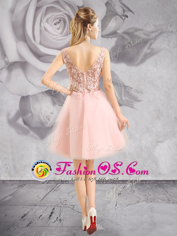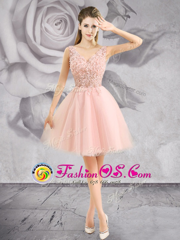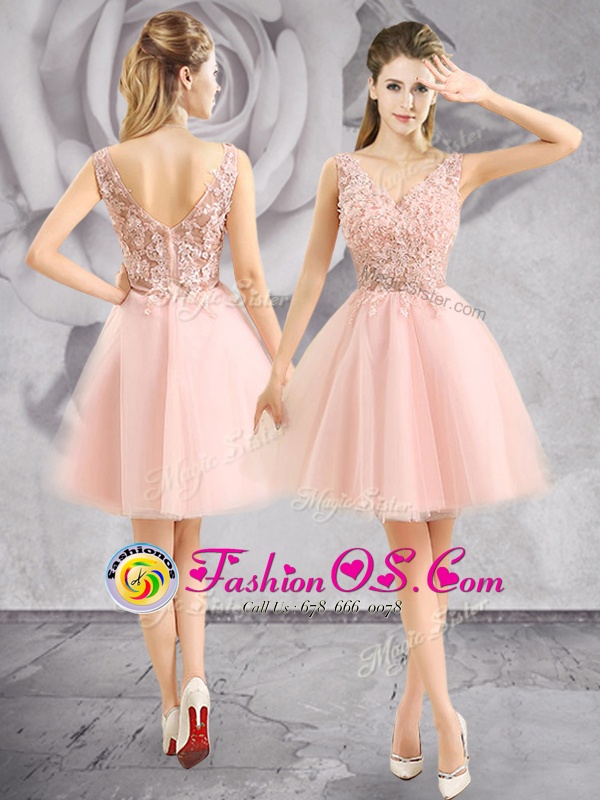 V-neck Sleeveless Tulle Cocktail Dresses Appliques Zipper
