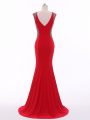 V-neck Sleeveless Womens Evening Dresses Brush Train Beading Red Chiffon