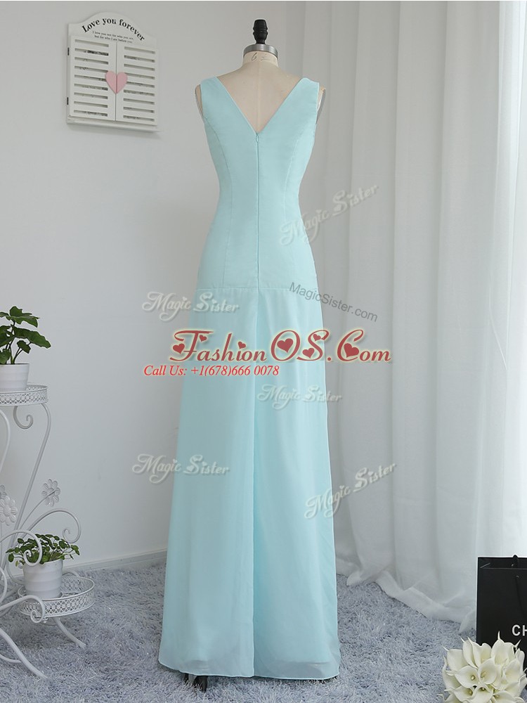 V-neck Sleeveless Zipper Quinceanera Court of Honor Dress Aqua Blue Chiffon
