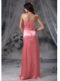 Waterloo Iowa Bowknot Beaded Decorate Bust and Waist Strapless Taffeta Watermelon Red Floor-length Bridesmaid Dress For 2013