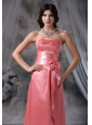 Home >  Bridesmaid Dresses >  Elegant Bridesmaid Dresses > Waterloo Iowa Bowknot Beaded Decorate Bust and Waist Strapless Taffeta Watermelon Red Floor-length Bridesmaid Dress For 2013