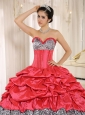 Home >  Quinceanera Dresses >  Zebra Quinceanera Dresses > Watermelon and Black Sweetheart Ruffles Zebra Quinceanera Dress With Floor-length In Salta