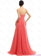 Watermelon Beading Long Prom Dresses with Ruching and Sweep Train